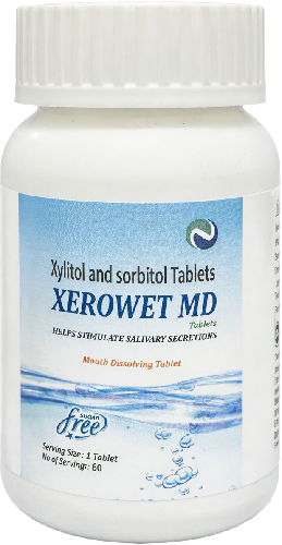 Xerowet MD Tablets contain xylitol and sorbitol, which help stimulate salivary secretion and support relief from dry mouth.
